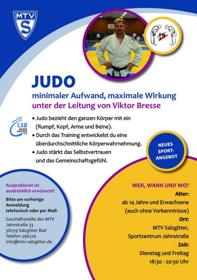 Weitere Informationen direkt unter der Emailadresse: judo@mtv-salzgitter.de