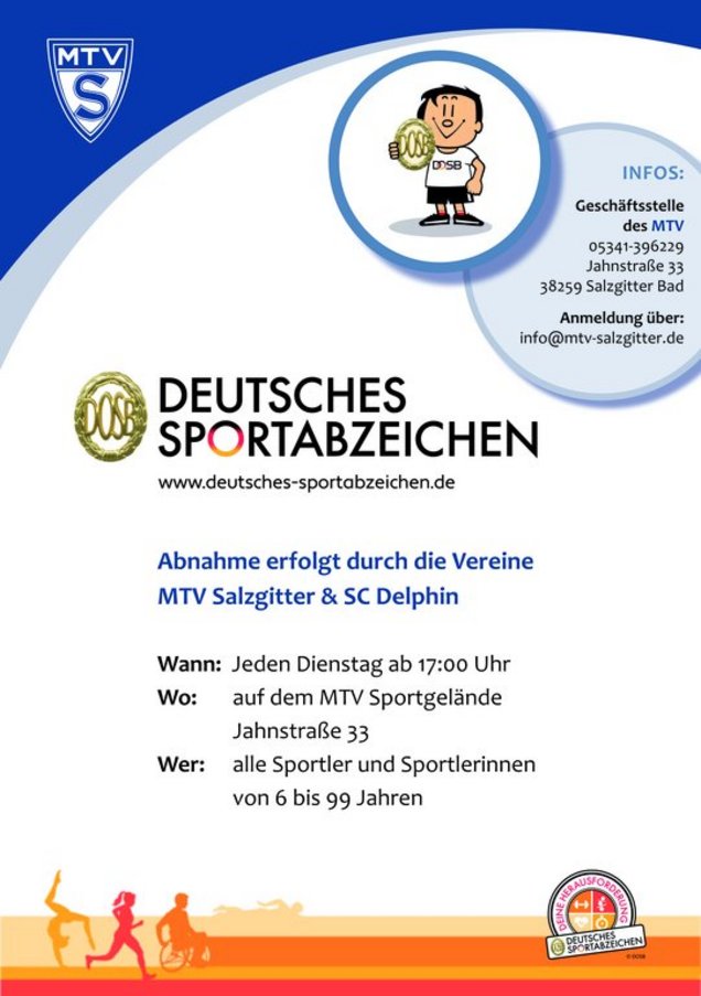 Auch der MTV Salzgitter bietet innerhalb seines Sportabzeichen-Treffs gute Trainings- und Abnahmezeiten. Diese sind von Mai bis September jeweils dienstags ab 17 Uhr.